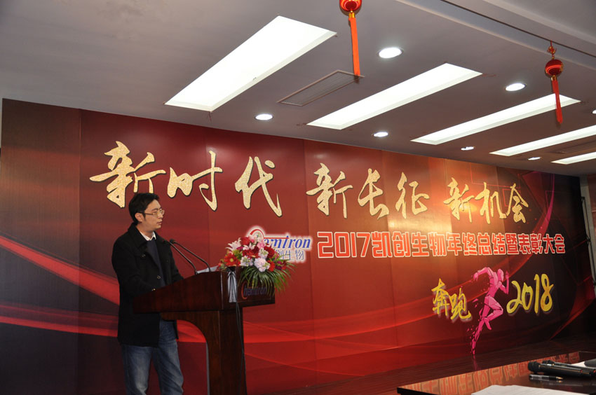 首先,由凱創(chuàng)生物副總經(jīng)理王勤主持致開幕詞, 2017年度公司取得的成績做總結(jié),并且展望了2018年的公司規(guī)劃,同時制定了新一年的發(fā)展目標。其次,各部門負責(zé)人闡述了自己部門的新一年計劃與發(fā)展。